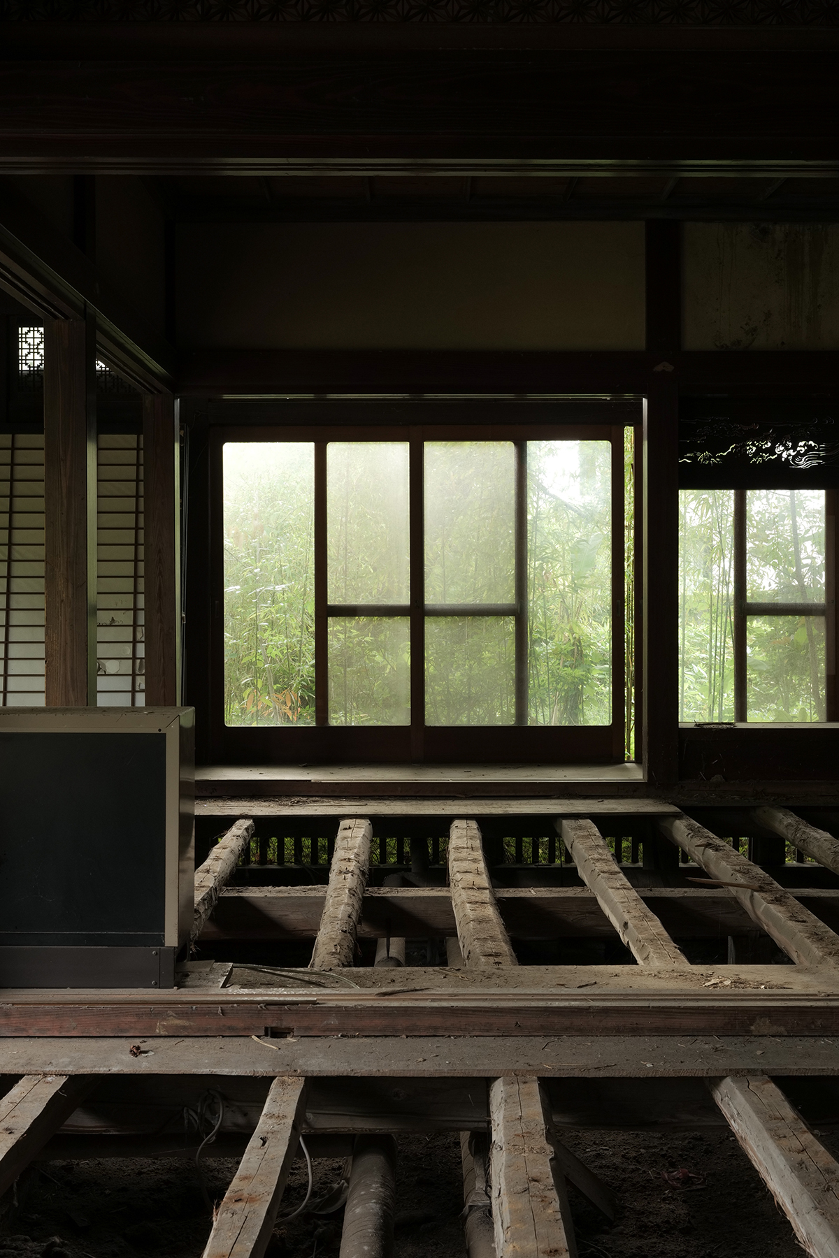 鎌倉旧市街、約2,000㎡の旗竿敷地に佇む元外交官邸の再生計画である。雑木林に囲まれ、都市の時間軸から切り離されたかのようなこの場所に建つ屋敷は、現代の住宅ではもはや見られない骨太な架構によって構成されていた。その屋内は日中でもほの暗さが漂い、光ではなく影が空間の質を空間の質を決定づけていた。利活用のために空間構成は大きく改変され、用途も民泊へと転換されるが、我々は屋敷に宿っていた「影」の質を丁寧にすくい上げ、改修後の空間に再配置することで、この建築の固有性を継承することを試みる。