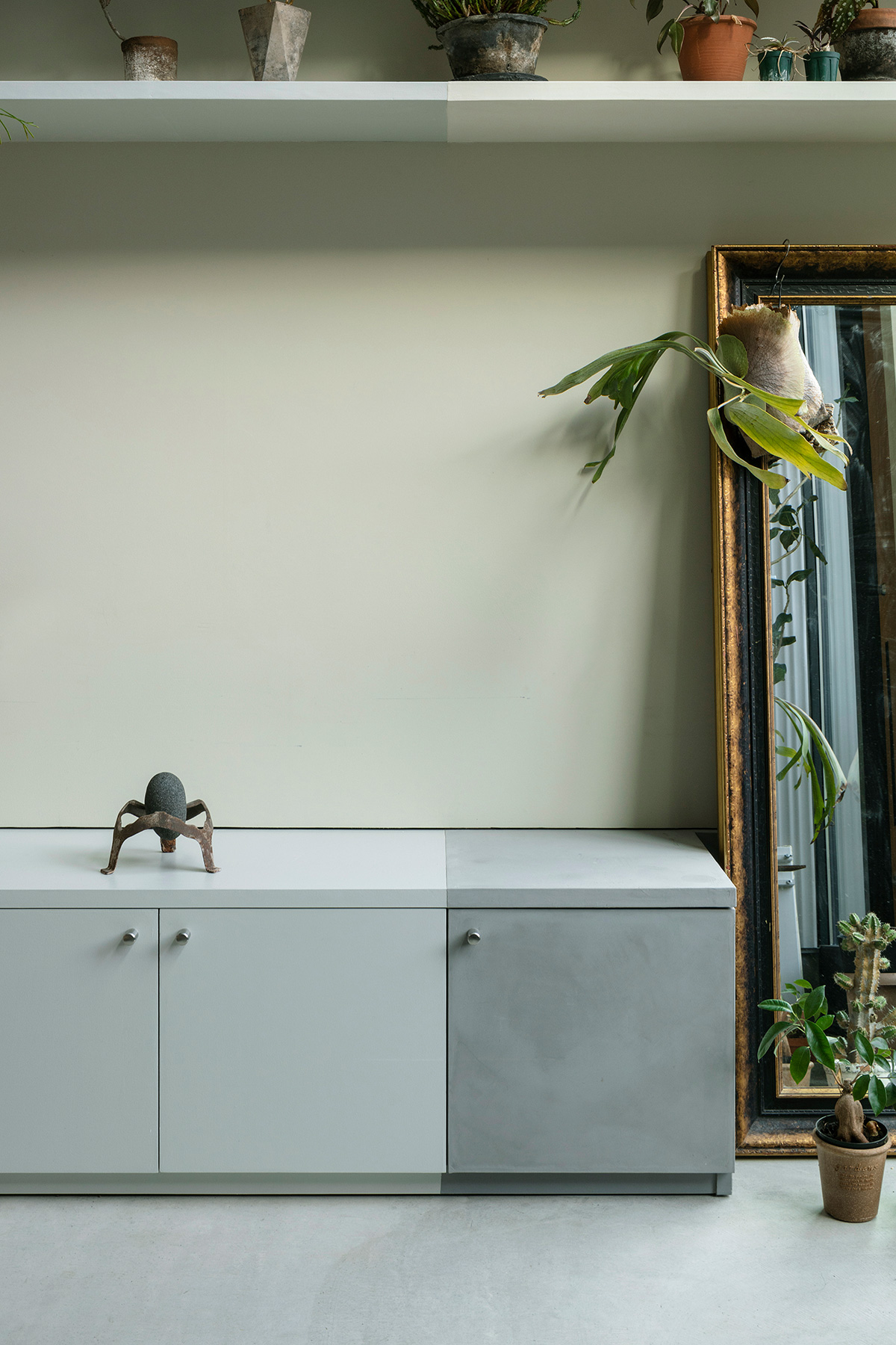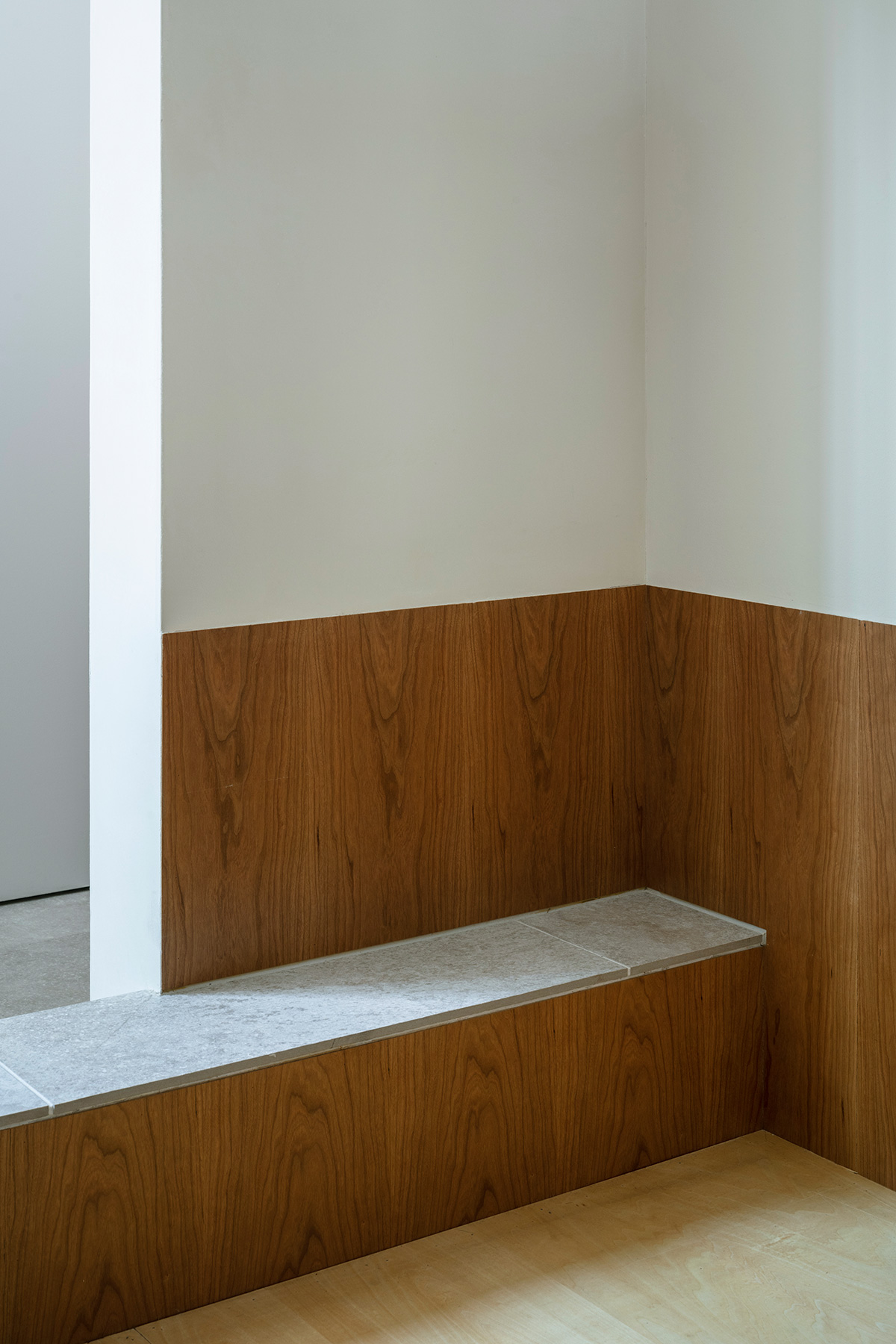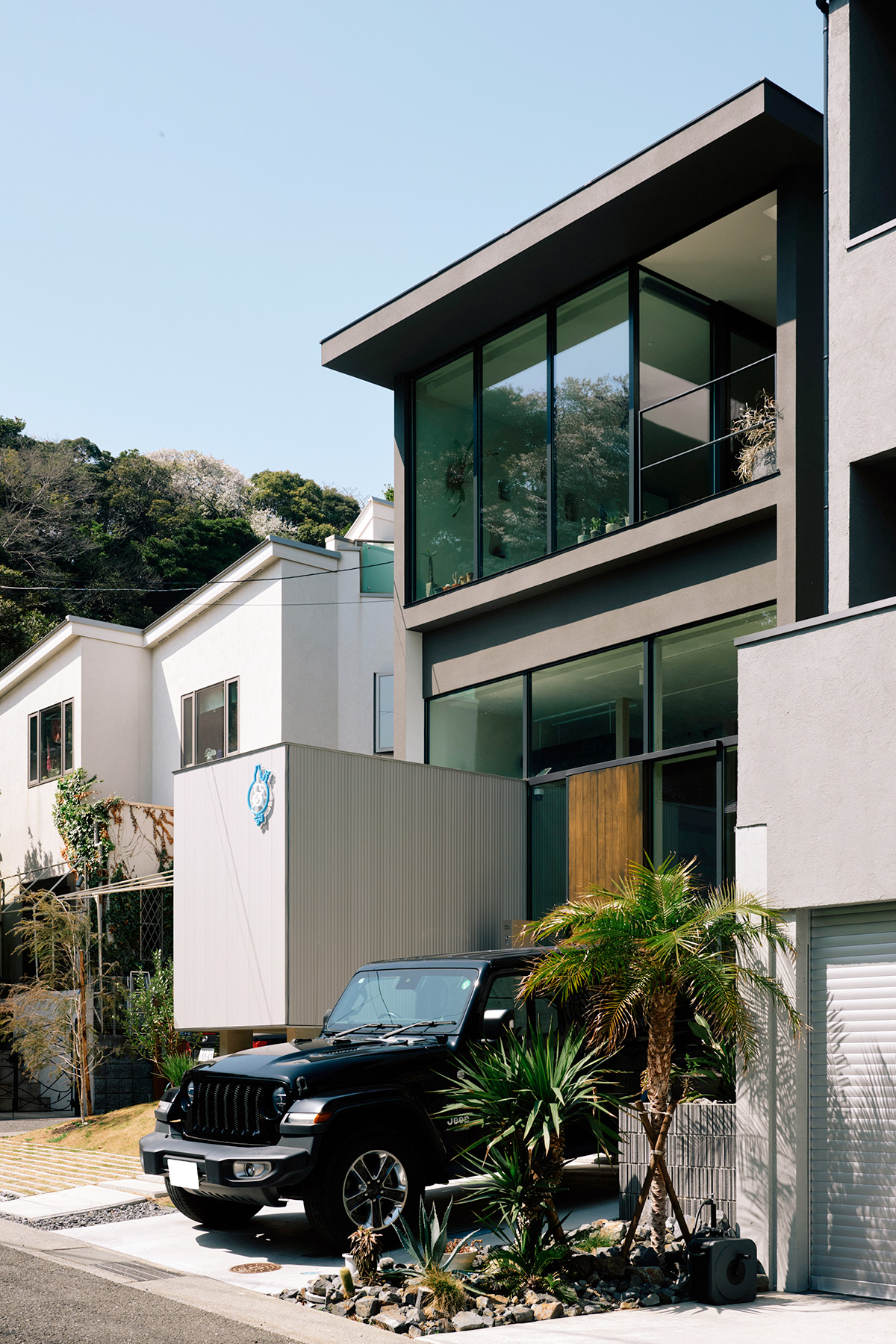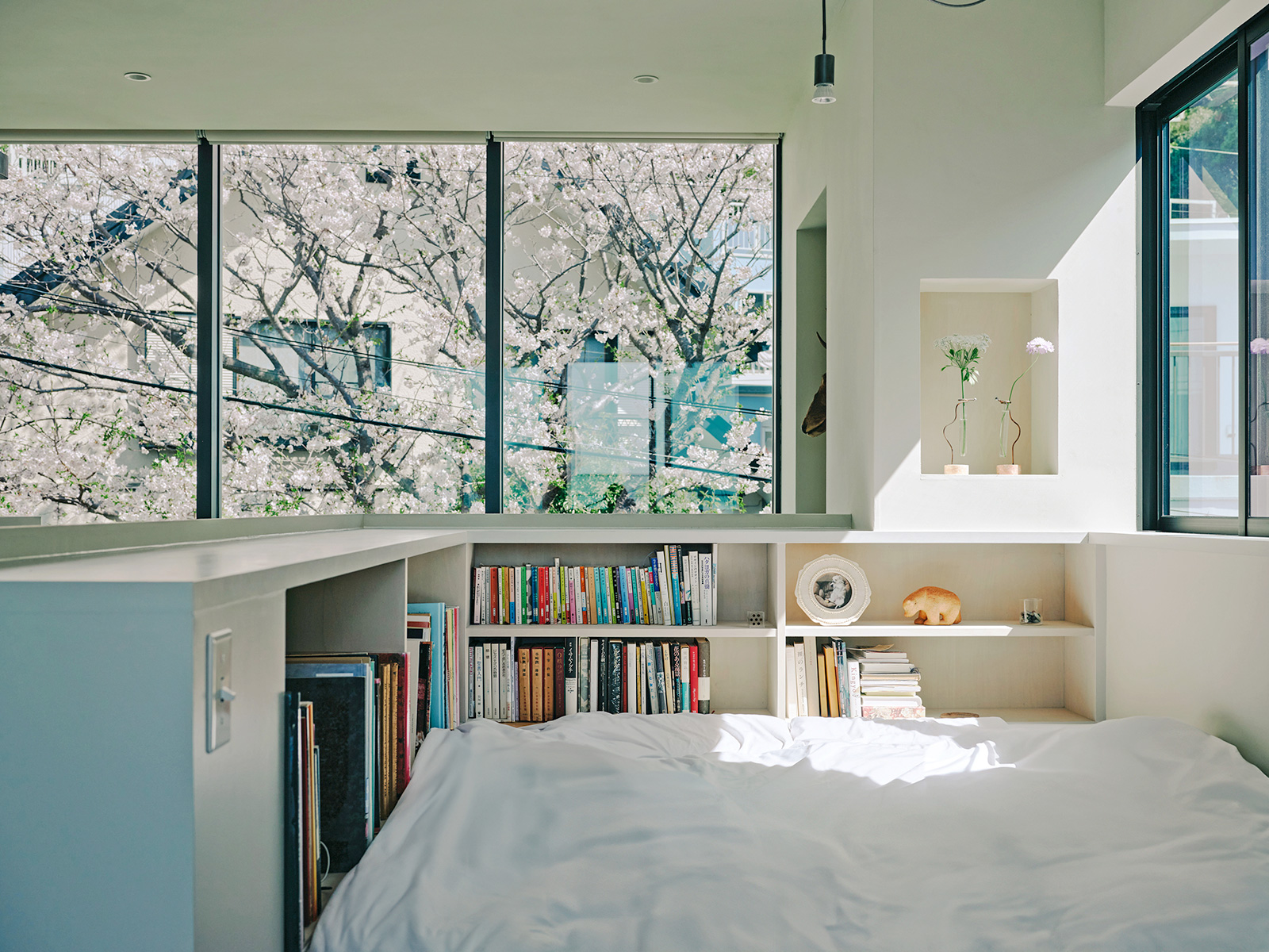 アヴァンギャルドなアパレルを手がけるデザイナー夫妻のための、アトリエ併設住宅である。本計画は、ファッションにおける〈ずらす〉〈はずす〉〈くずす〉という操作を、建築に拡張する試みである。仕上材はあえて余剰を見込まず実数で発注し、現場で生じた材料の不足や余りに即興で応答することで、入隅・出隅に“ずれ”を持ち込む納まりとした。慣習的な納まりからの脱却であると同時に、素材廃棄の削減にもつながっている。平面構成もこの操作と連動しており、異なる素材で仕上げた機能コアが、ワンルーム空間に縫い込まれるように配置されている。ファッションの文脈から引き出されたこれらの操作により、建築と素材の関係に批評的な厚みを与え、空間の均質性や設計の規範を問い直すことを試みた。